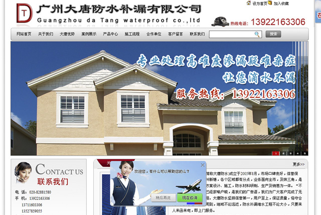 廣州大唐防水補漏(簡稱大唐防水)成立于2005年8月,市場口碑良好,信譽保證。大唐防水位于廣州新塘,各個區域都有分點,業務面向全市,及珠三角,是一家集防水堵漏工程方案設計、施工,防...