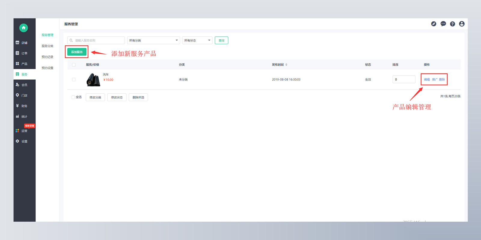 添加服務產品后,到首頁編輯添加服務模塊,選擇對應分類——保存,即可顯示服務產品